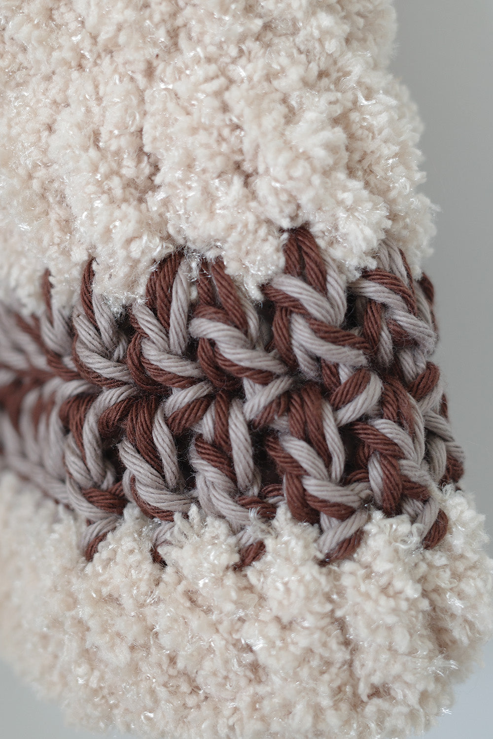 crocheted bucket hat with a mix of chunky polyester and cotton yarn