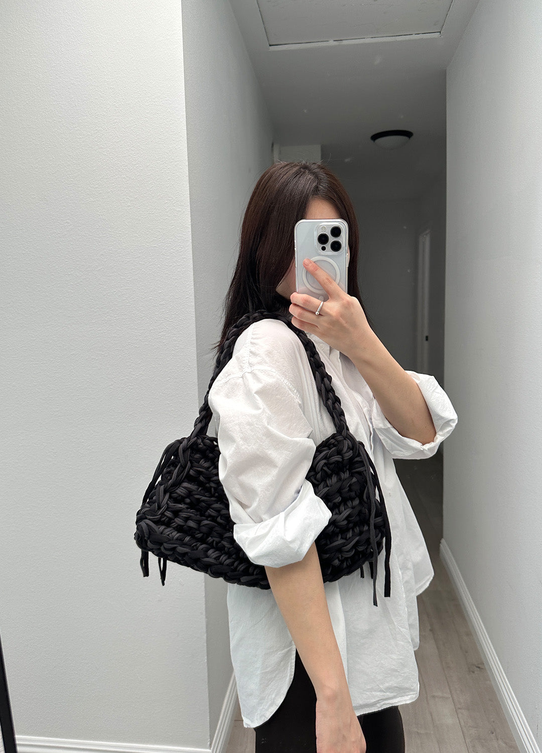 Made from repurposed t-shirt fabric. Chunky, Slouchy, and perfect for your everyday bag.